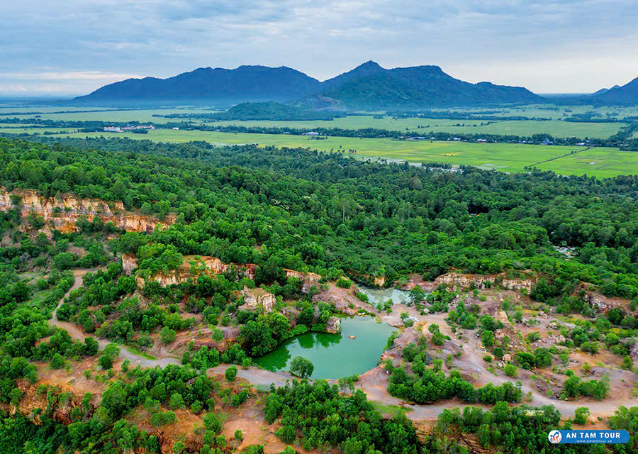 - Thời gian tham quan: 7:00 sáng - 6:00 chiều. Hồ Đá Tà Pạ là một hồ nước được hình thành từ việc khai thác đá trên núi, tạo nên khung cảnh đẹp như tranh thủy mặc với mặt nước nhiều màu sắc khác nhau. - Hồ Tà Pạ nằm ở huyện Tri Tôn, An Giang, nổi tiếng với mặt nước xanh ngọc bích phản chiếu núi đồi xung quanh. Đây là điểm check-in lý tưởng cho những ai yêu thiên nhiên và muốn tận hưởng khung cảnh bình yên.