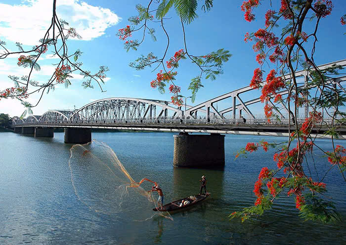 Sông Hương là biểu tượng thơ mộng của thành phố Huế. Con sông xanh biếc uốn lượn qua kinh thành và nổi tiếng với cảnh hoàng hôn, thuyền rồng và những làn điệu ca Huế.